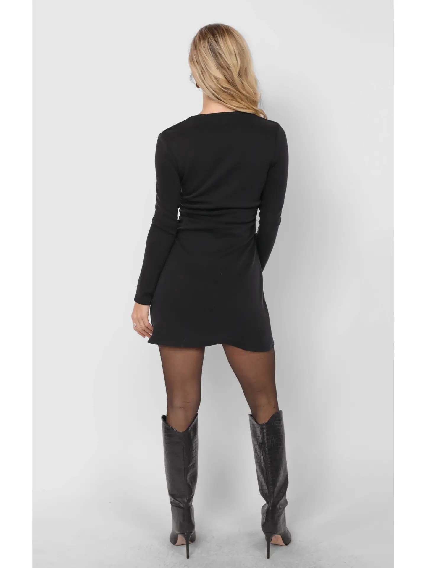 The Daphne Mini Dress features a chic square neckline and flattering ruched details that enhance your silhouette with ease. Its sleek black fabric offers versatile elegance, making it perfect for both daytime outings and evening events. Designed to boost your confidence, this dress combines comfort and style seamlessly, helping you feel supported and stunning wherever you go.