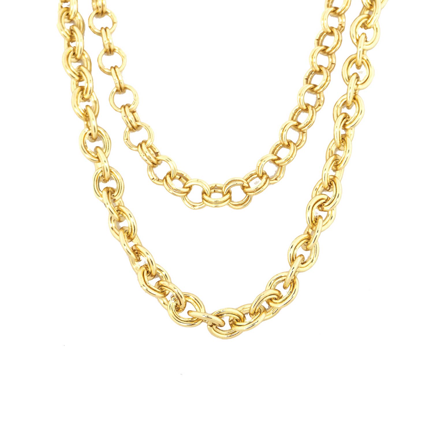 double layer circle link necklace with toggle closure. 16" and 18" length.
