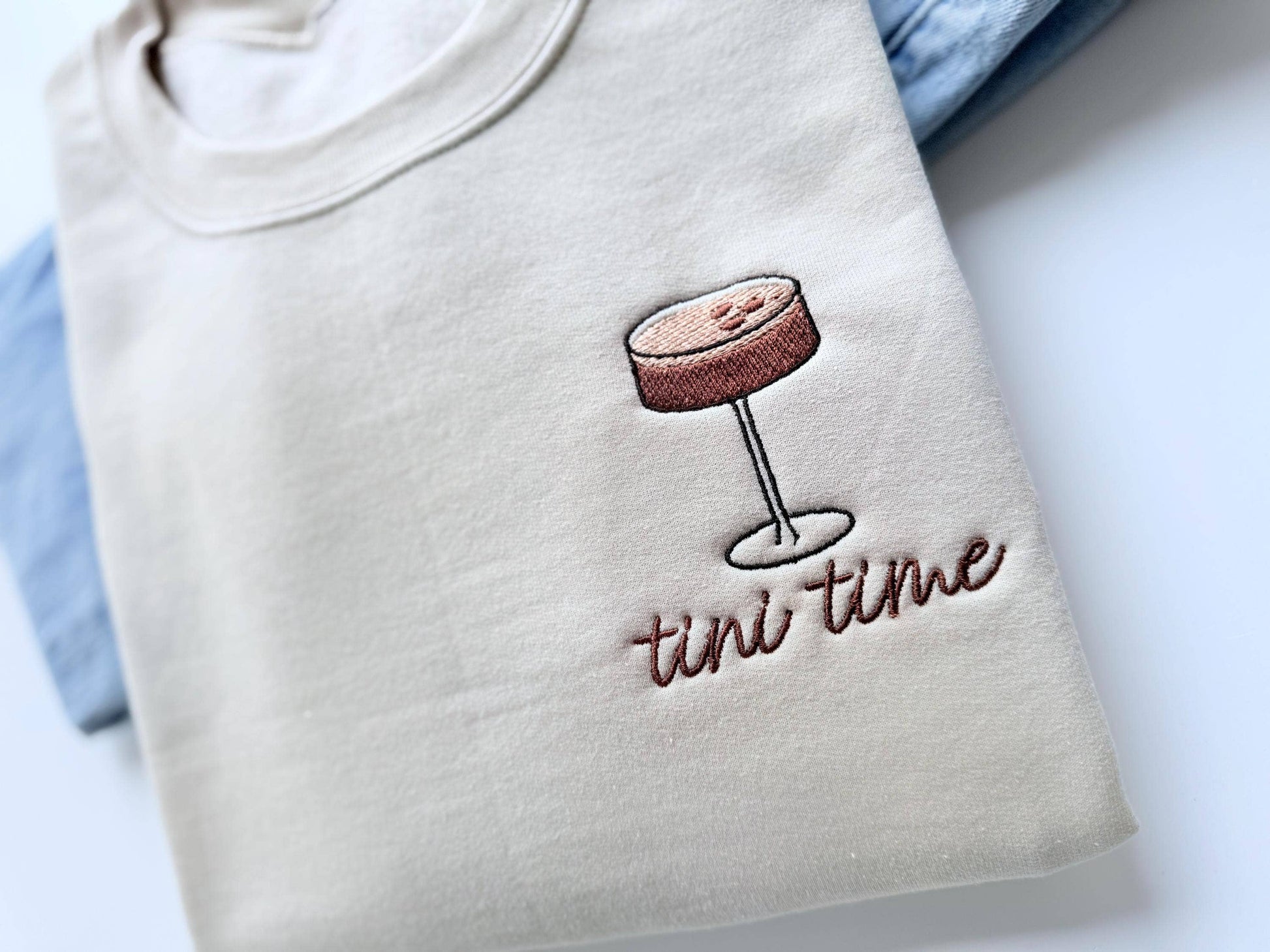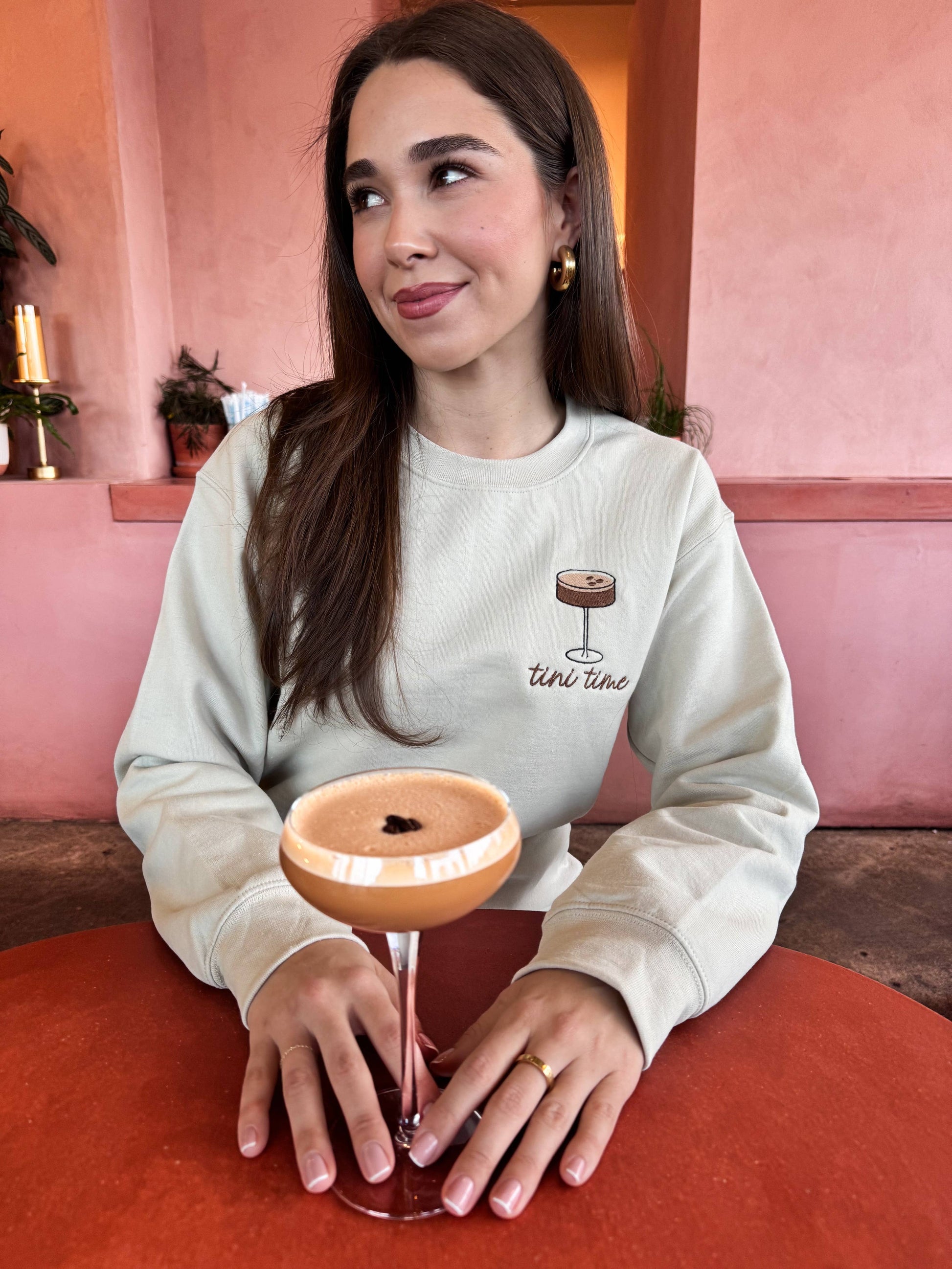 Celebrate your love for espresso martinis with our chic Espresso Martini Three Beans Embroidered Sweatshirt! Designed for cocktail enthusiasts, this cute & cozy crewneck showcases an elegant embroidered depiction of the iconic espresso martini with three beans of course, adding a playful flair to your everyday wardrobe.