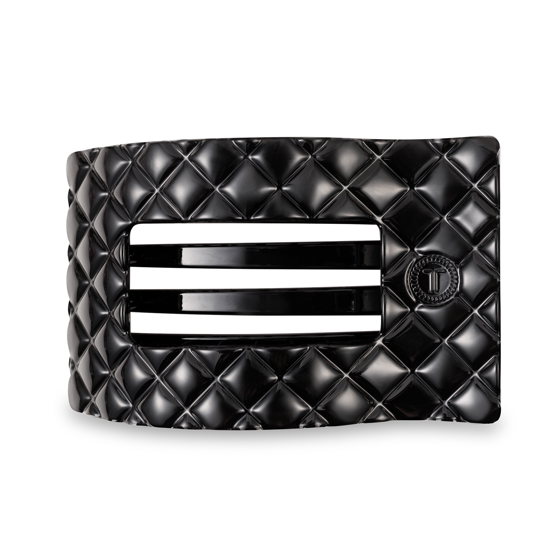 Lean back and relax - comfort just got a new shape. Introducing the TELETIES Jet Black Quilted Large Flat Rectangle Hair Clip, the newest addition to our best-selling Flat Clip Collection. Joining the original Round and Square styles, this elevated rectangular design offers the same flat-back comfort and stronghold TELETIES is known for - now with a sleek, modern style.