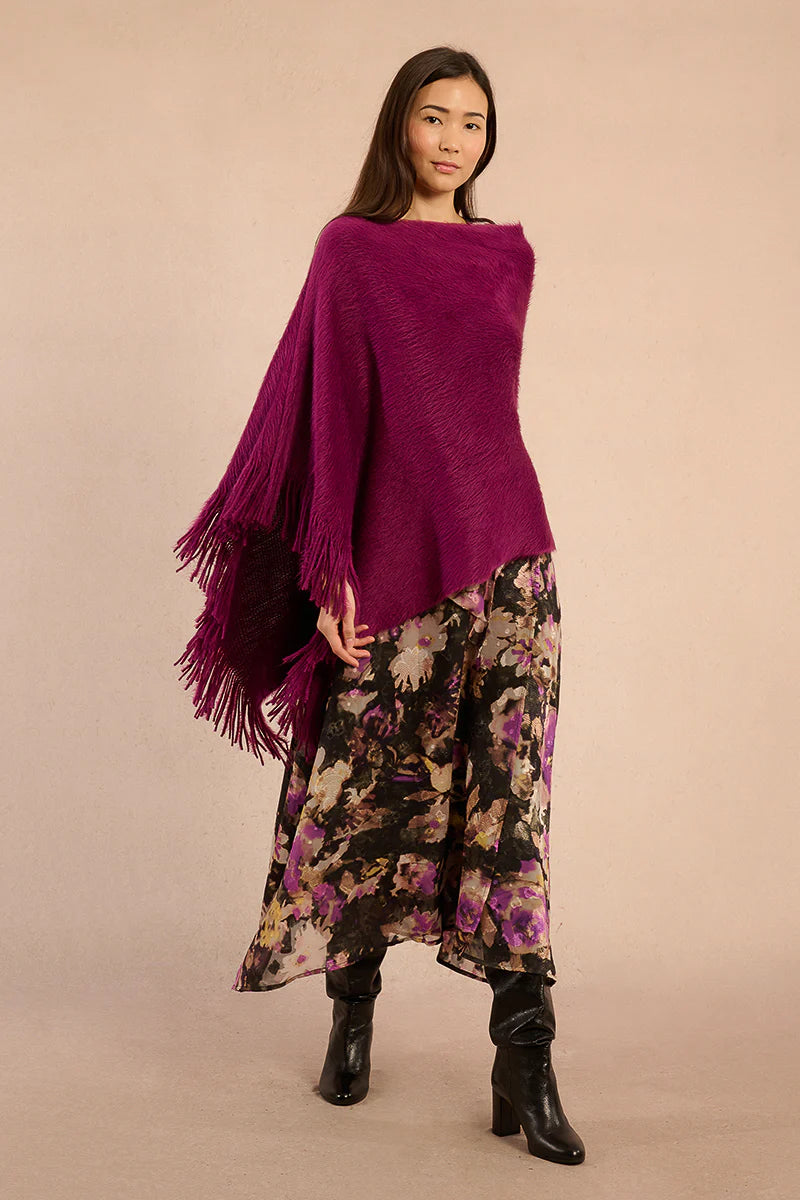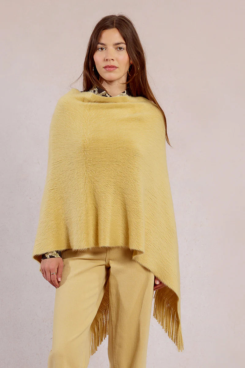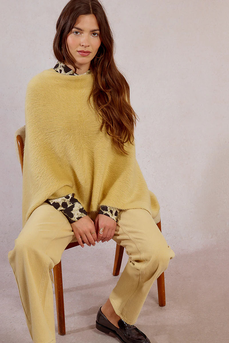 Embrace cozy comfort with this soft, silky fuzzy poncho featuring a delicate fringe edge. Its versatile design lets you wear it three different ways, adapting effortlessly to your style and needs. Perfect for layering on cool days, it offers warmth without sacrificing softness, making it a reliable companion for your everyday wardrobe.
