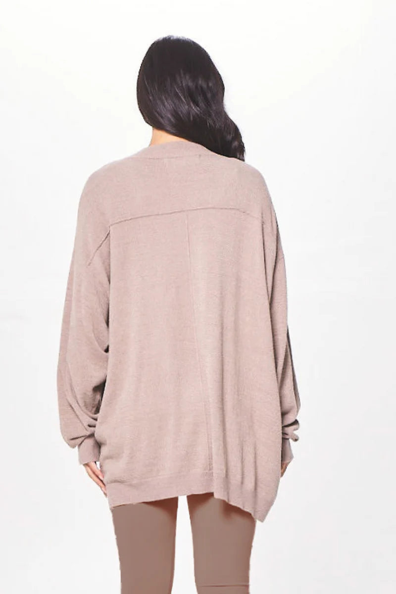The Latte Taupe Plush Knit Cardigan features: