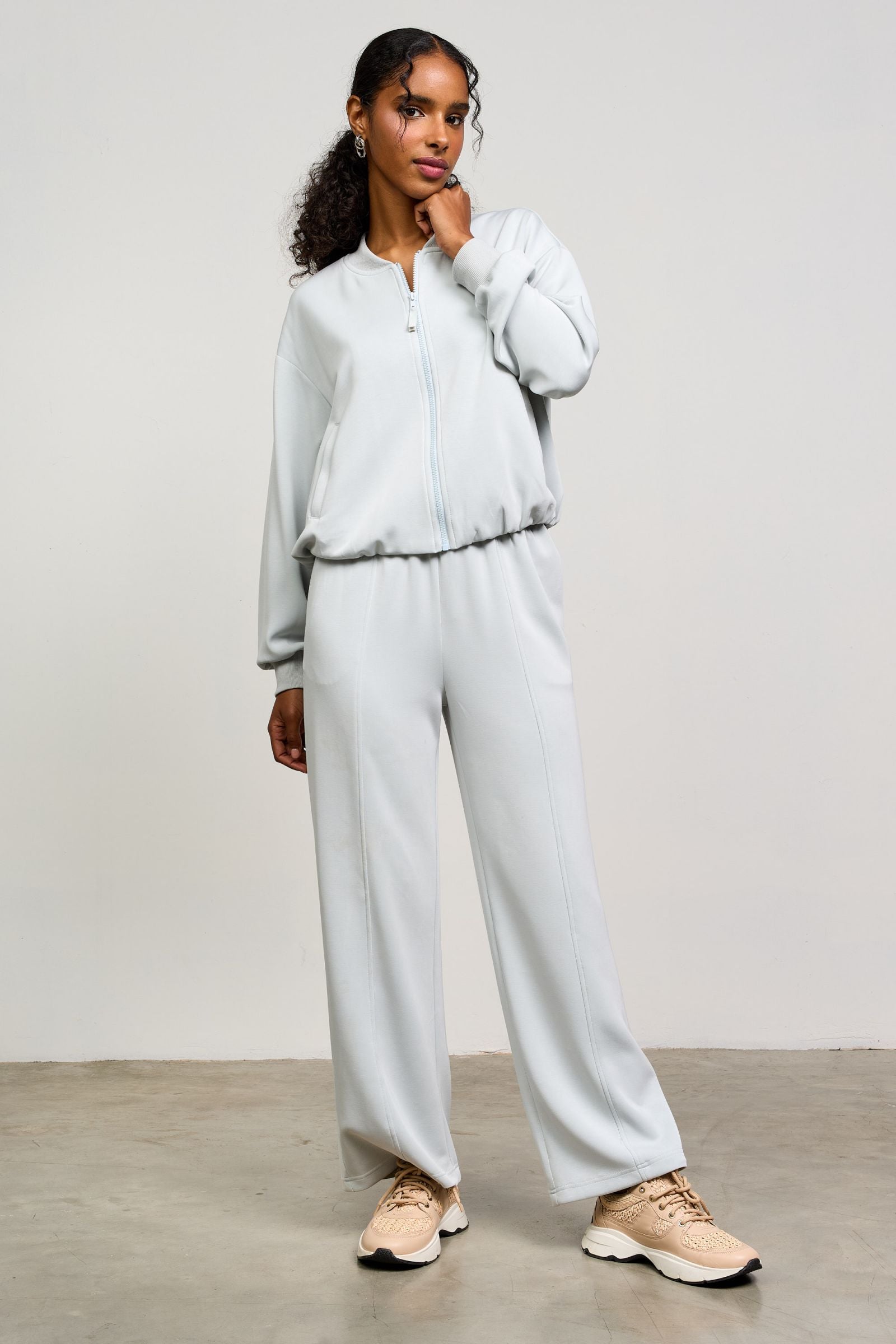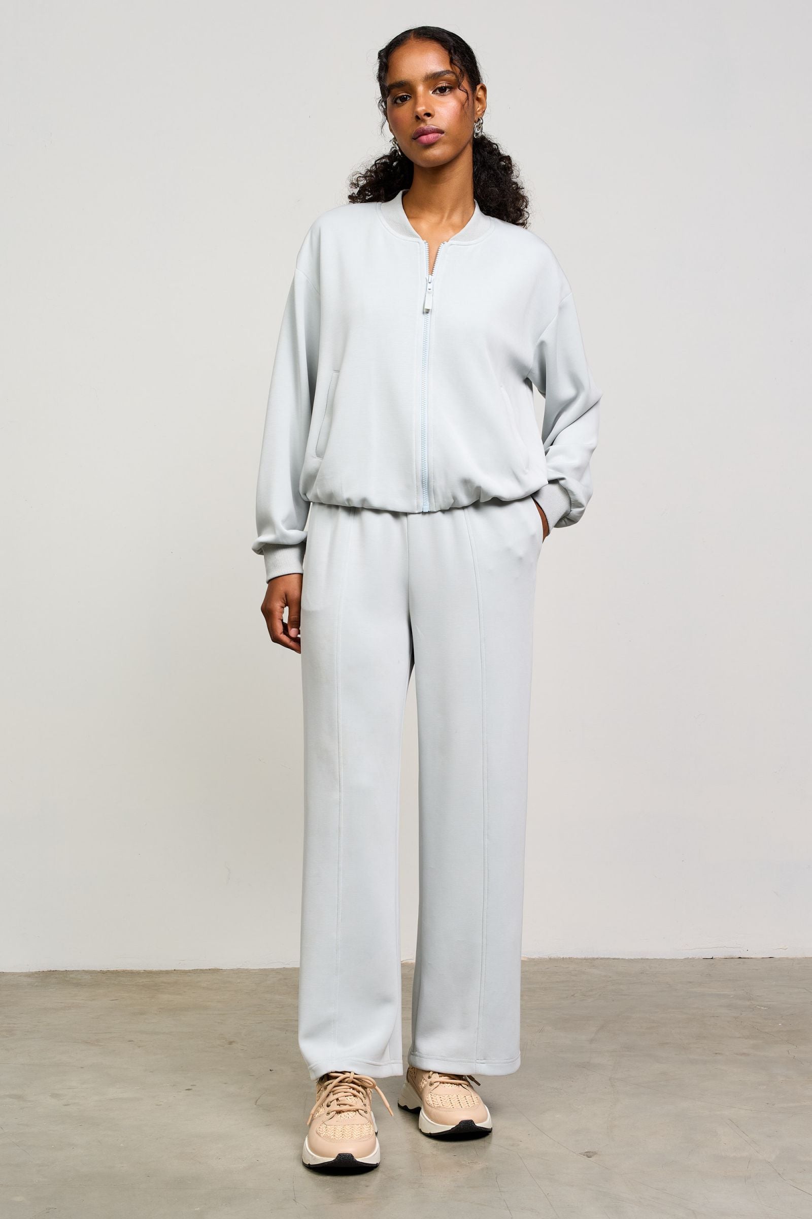 Get ready to take off in this super soft Modal Bomber Jacket. Made with modal fabric, this bomber jacket will keep you comfy and stylish. Complete the look by pairing it with the matching wide leg pants. (Bonus: this jacket is perfect for napping on long flights! shhh...)