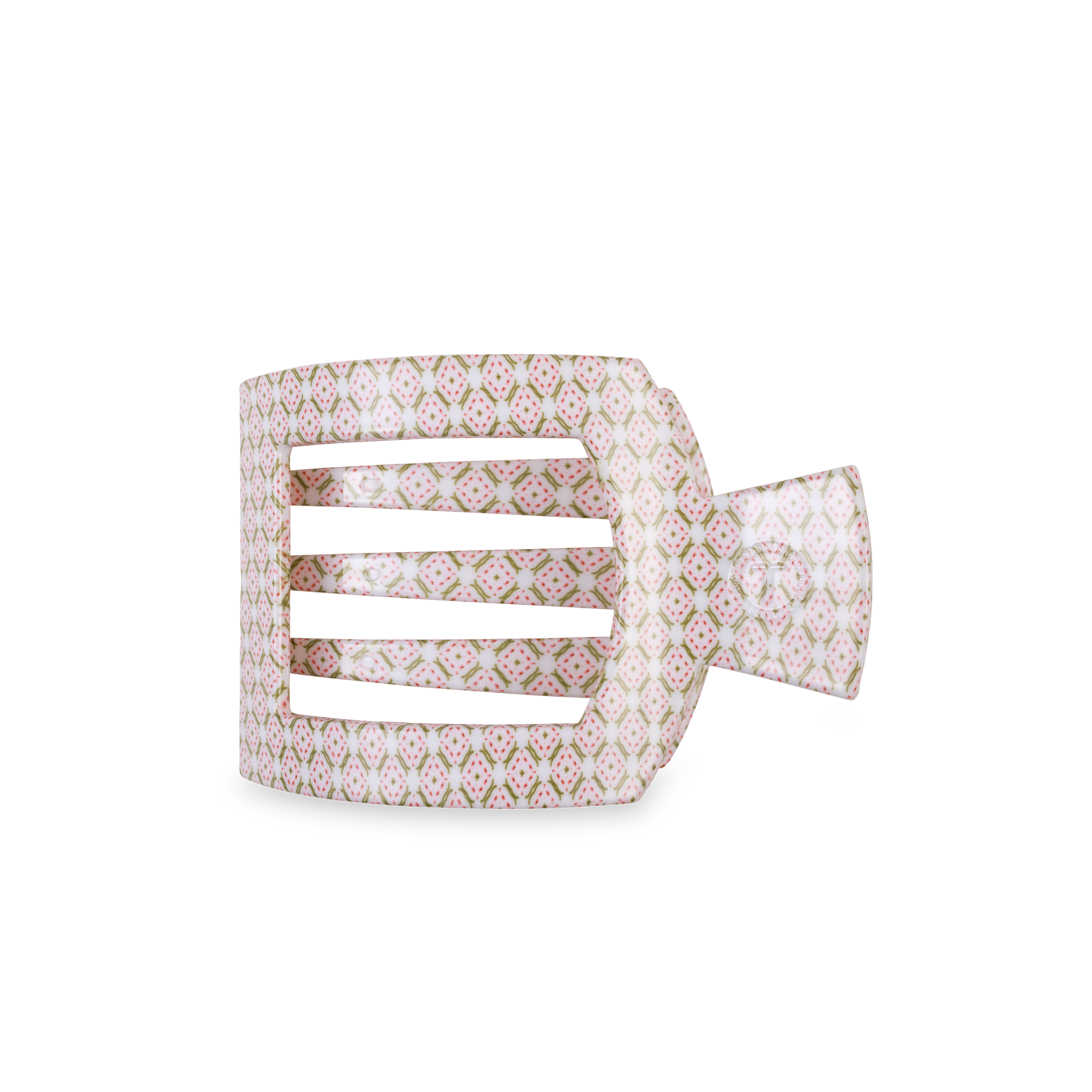 Lay flat and relax with the Pine & Pearl Medium Flat Square Hair Clip in Pink. The TELETIES x Laura Park Holiday Collaboration features bold, playful designs that combine Laura’s vibrant art with TELETIES signature function—perfect for any look!