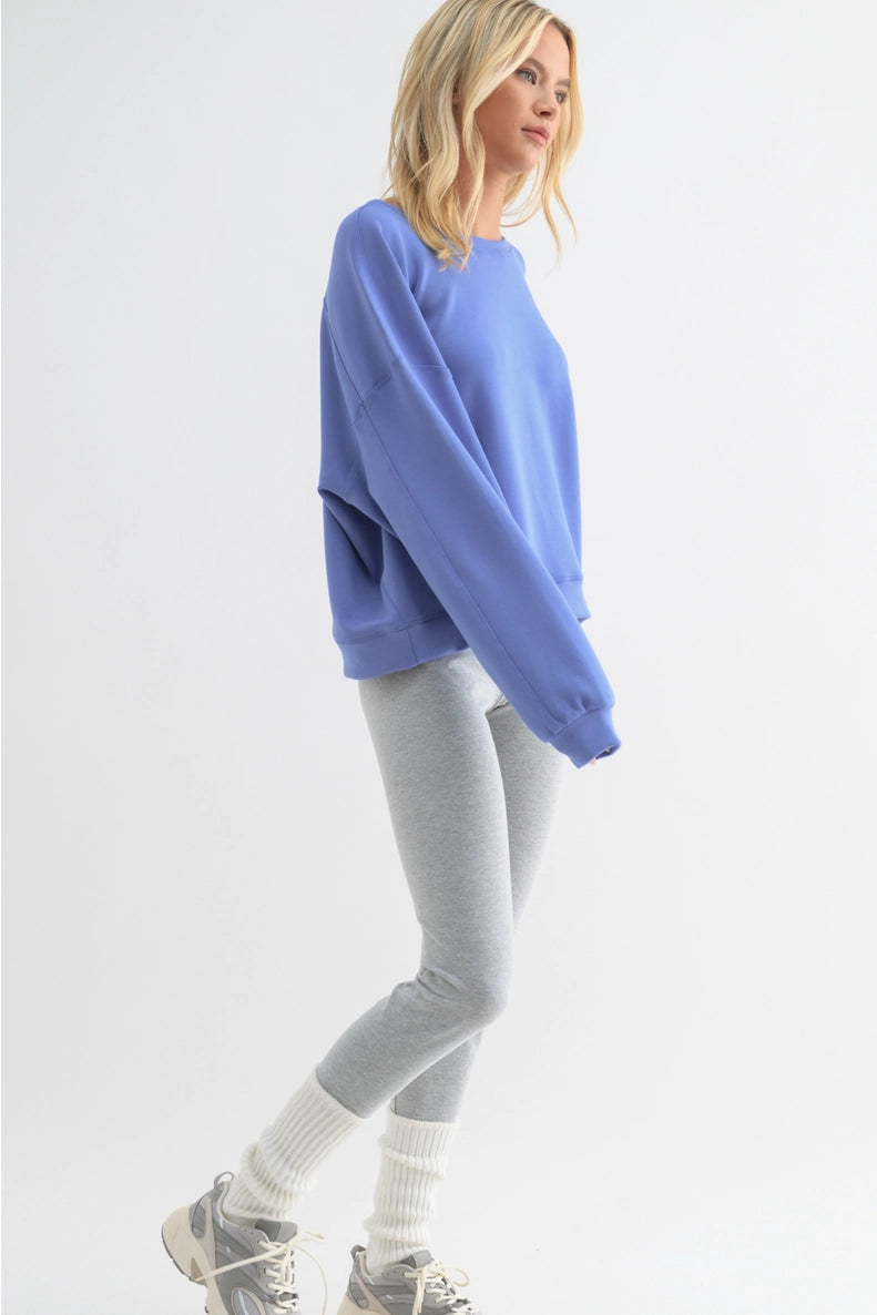 Stay cozy and stylish in our Scuba Relaxed Crop Sweatshirt, featuring a soft and comfortable design in a pretty coastal blue color. Perfect for your everyday adventures or lounging at home. Dive into relaxation with this fun piece!