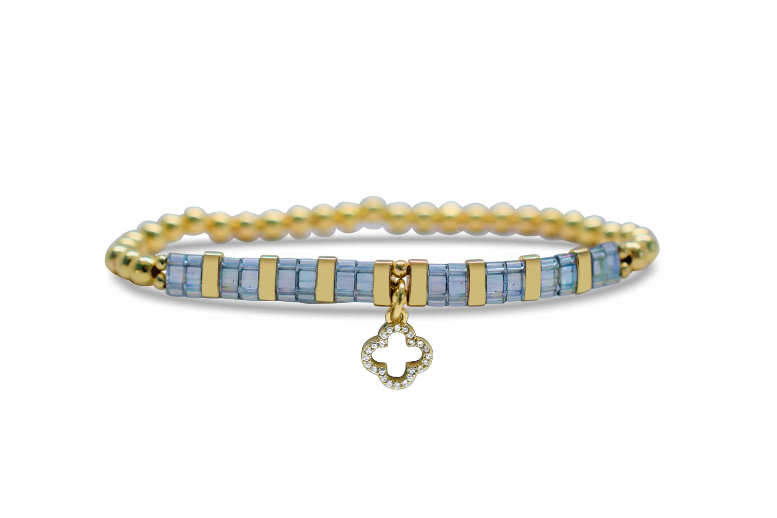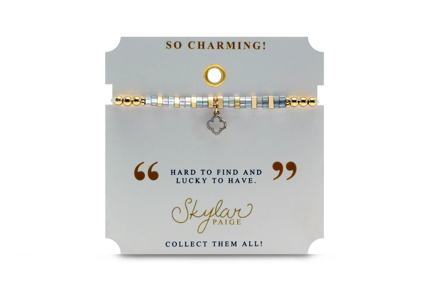 STRETCH BRACELETS IN THE “SO CHARMING” COLLECTION ARE MADE FROM PREMIUM QUALITY, JAPANESE GLASS MIYUKI® TILA BEADS. THE BRACELETS ARE METICULOUSLY ASSEMBLED WITH A MORSE CODE PATTERN, INSPIRATIONAL MESSAGING & STYLISH PACKAGING.