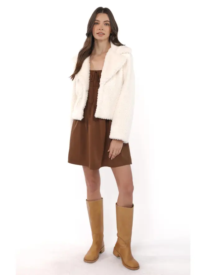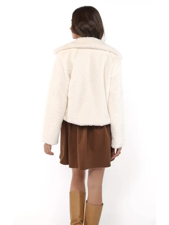 So So Soft Faux Fur Wide Lapel Coat : Ivory