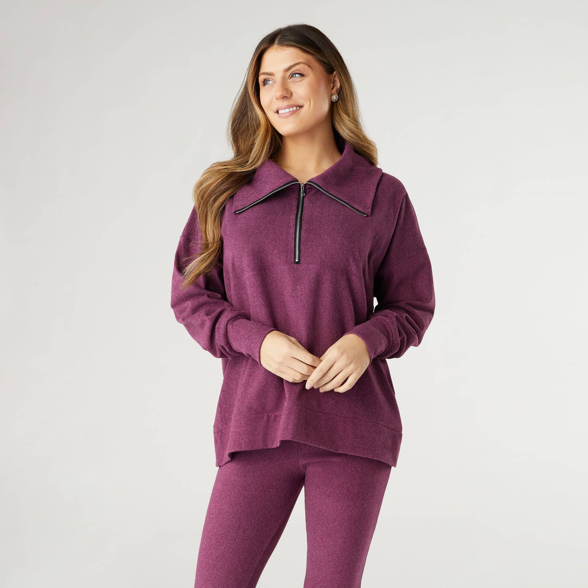 Comfort you dream about in a silhouette you can wear all weekend long. Buttery-soft fabric, lightweight stretch, and feel-good comfort. Features front side pockets and half-zip closure. Pair with the Weekend Brushed Leggings for ultimate comfort. Materials: Polyester, Spandex.